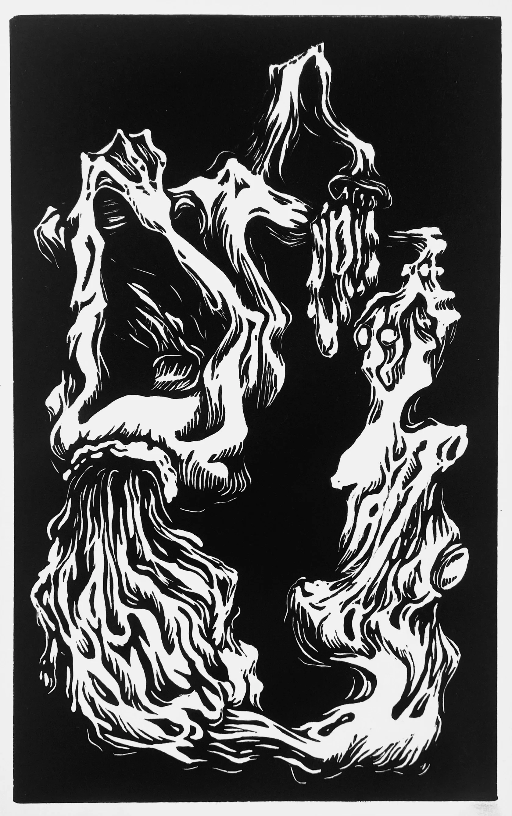 Linoleum relief carving on paper.