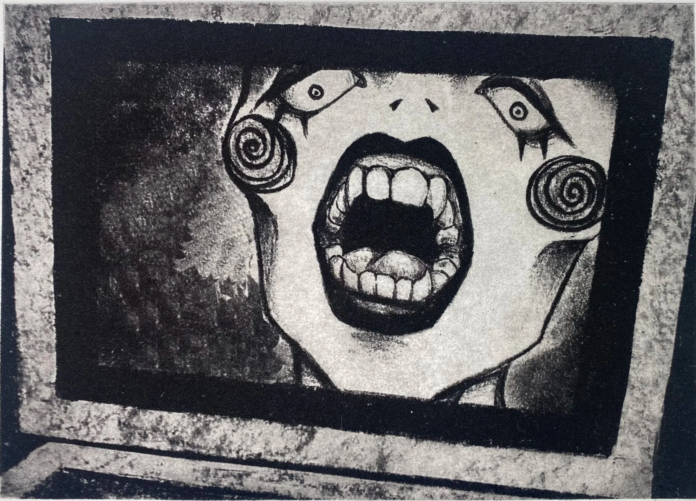 The Mirror Series A varied edition printed from a photopolymer plate made from one of my drawings. 6” x 4”May 2024.